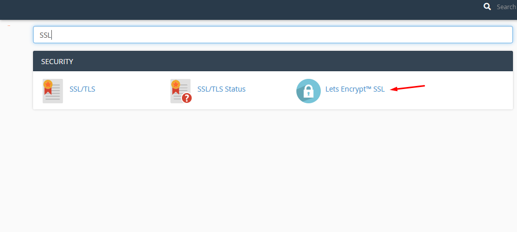 Arama menüsüne SSL yazıyoruz ve Let’s Encrypt SSL menüsüne giriş sağlıyoruz.